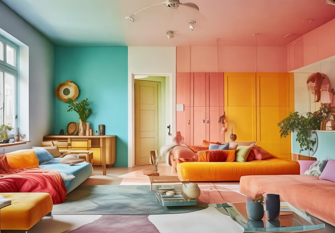 6. 色彩渐变创造和谐色彩渐变是另一种提升空间美感的方式。通过在同一色系内渐变,可以从深到浅,或者从暖到冷,营造出和谐统一的视觉效果。在背景墙或者天花板上使用渐变色彩,可以打造出独特的艺术感。